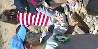 Al día siguiente de la conversación sobre cabañas me fui al campo de excursión con los niños. Sandro me dió la idea de hacer una cabaña. Había poco tiempo, todos sabeis que las cabañas se hacen poco a poco, ideando cada detalle, buscando el momento para volver al día siguiente a poner un tablón viejo que podría ser una mesa. Soñando. La propuesta causó su efecto y los niños inmediatamente aunaron esfuerzos e ideas para hacer su cabaña. Acumularon piedras, palos, tablas, debajo de un árbol. Corrían de un lado a otro y traían objetos como las hormigas llevan comida al hormiguero o rescatan un herido. Encontraron un "arco" que decidieron guardar para "cazar animales". Adjunto fotos de la experiencia.